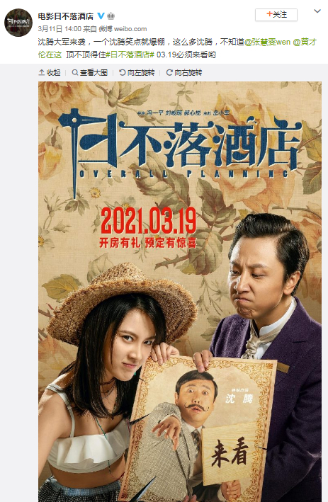 此前,《日不落酒店》在宣传方面,一直让观众误以为是开心麻花出品,影片官微曾经的描述是“这么多沈腾”,并且在宣发中,“沈腾特别出演”的标签到处明晃晃地挂在主演的后面,沈腾在演员番位表中也排在第三,相当于男二号的水平。