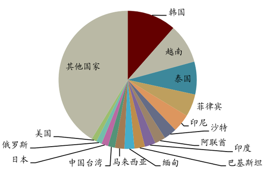 图表:2020年享受退税的钢材产品主要出口地