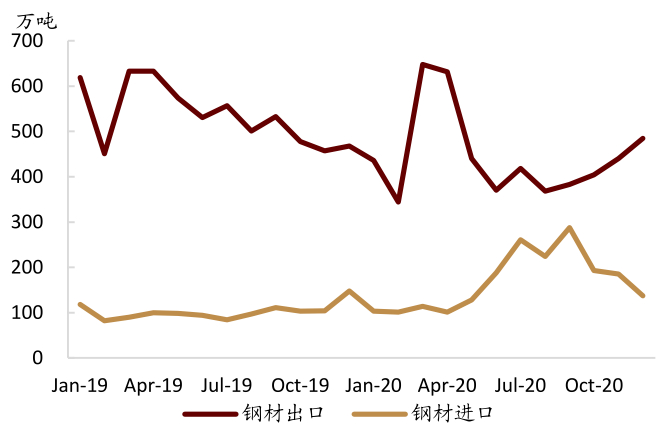 图表: 2020年钢材出口下滑严重