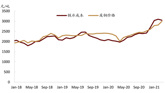 图表: 历史上废钢价格与铁水成本有较强的联动性,且长期溢价