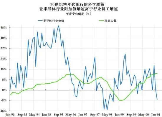 在20世纪90年代施行的科学政策下,半导体行业附加值的增速比员工增长更快。