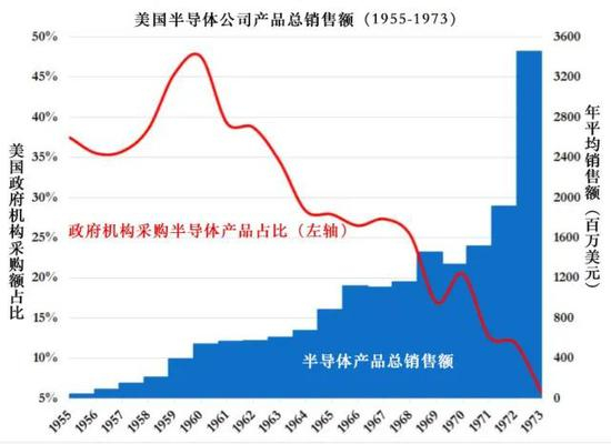 然而,到了20世纪60年代末,该行业发展得如此之快,以至于政府采购以及政府通过“第二来源”合同等方式实行准监管的能力,都变得相对不再重要。虽然半导体行业的存在是基于20世纪40年代末的军事采购,但到了20世纪60年代末,军事采购在市场中所占的份额已经不到原来的四分之一。