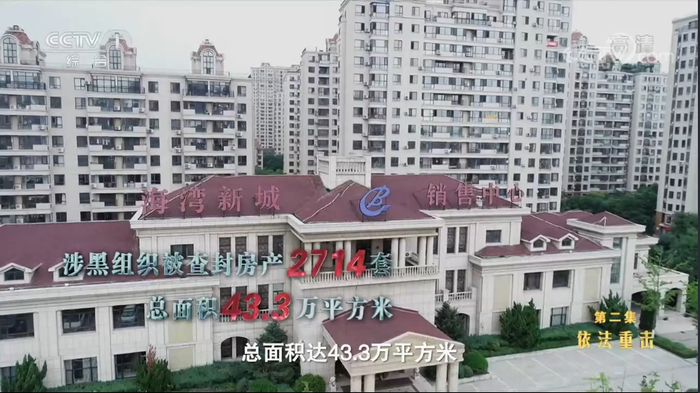 ·徐长宝在普兰店进军房地产,开发海湾新城楼盘。涉黑组织被查封房产数量惊人。(视频截图)