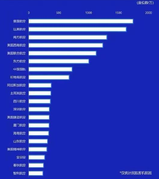 3月全球航司投放运力TOP20:中国9家航司上榜 美国7家
