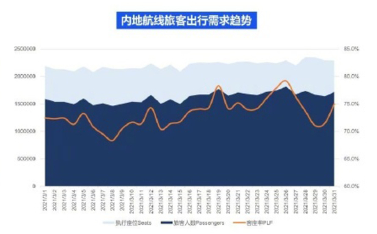 3月中国内地航线日均客座达到73.2%,较2月平均值高出11.84%,最高单日客座率突破79%。