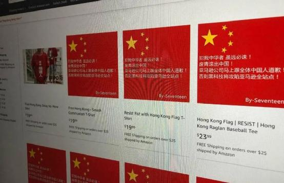 前段时间,有人把亚马逊上的“港毒”商品,直接替换成了爱国口号,用的其实就是类似手法。