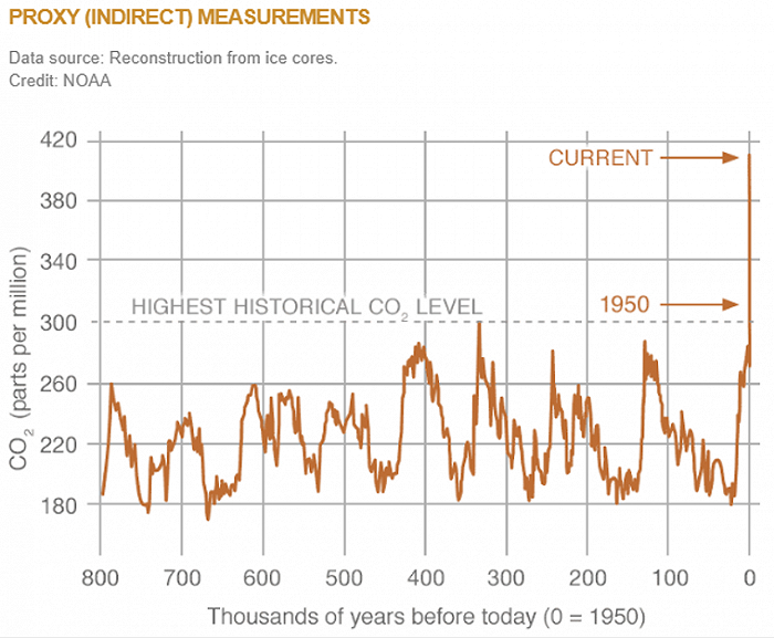图4 工业革命以来全球温度与温室气体浓度变化情况(IPCC)