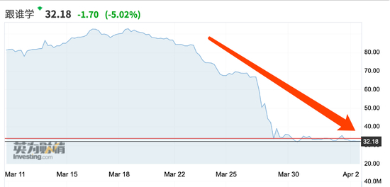 教育中概股自2月股价触顶后,均转头下跌,头部机构如新东方在线、跟谁学、好未来等股价一度下跌30%—70%。