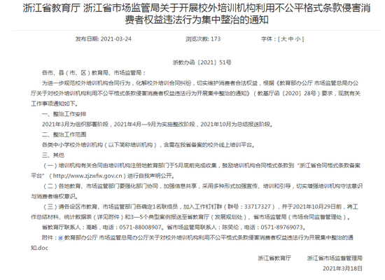 而局部地区的整顿,早已经开始。北京最先展开整顿,自3月10日以来,北京各城区的线下学科类培训机构停课整顿,迎来突击严查,目前复课的机构寥寥。3月下旬,浙江省教育厅也发布通知,将集中整治校外培训机构。