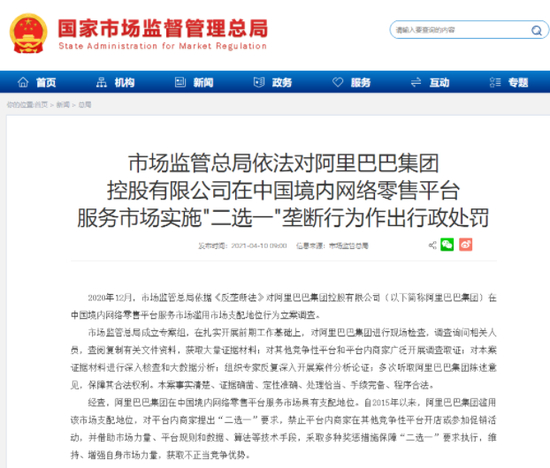 阿里不可以二选一,但为什么只惩罚阿里?那么多小平台也在做,为什么不惩罚?