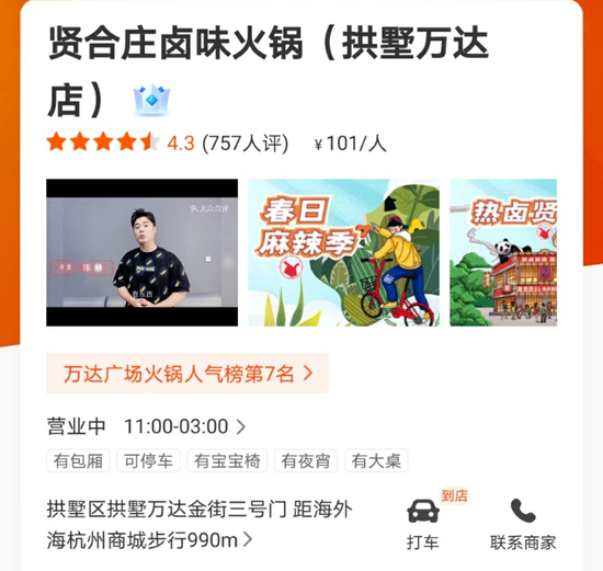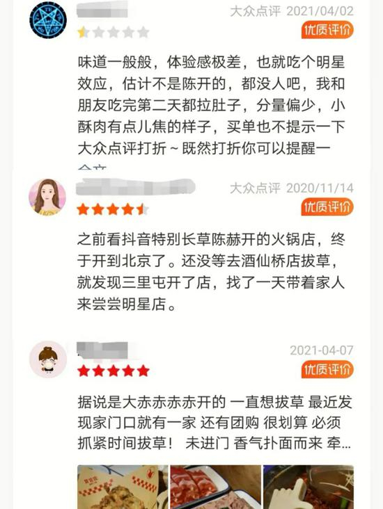 另外,市场报网络版在外卖平台上浏览北京多家贤合庄火锅的评论区发现,打卡“陈赫开的”、“明星店”成为许多网友到贤合庄火锅就餐的原因。