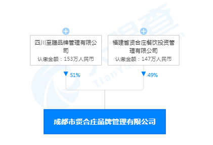 天眼查数据显示,福建省贤合庄餐饮投资管理有限公司与四川至膳品牌管理有限公司共同持有并控制着成都市贤合庄品牌管理有限公司。其中,四川至膳品牌管理有限公司持股比例占51%。