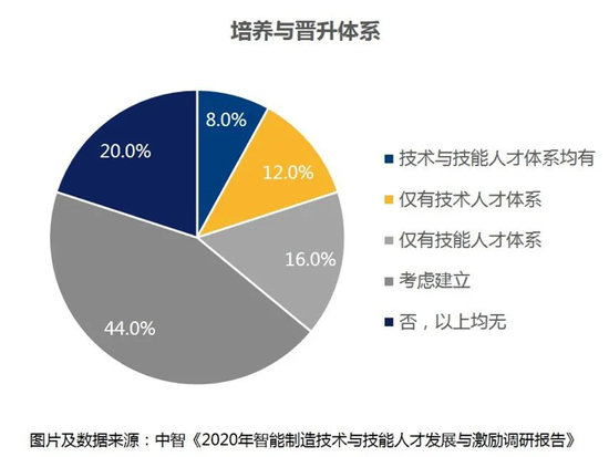 仅8%的企业表示同时拥有智能制造技术与技能人才培养与晋升体系;
