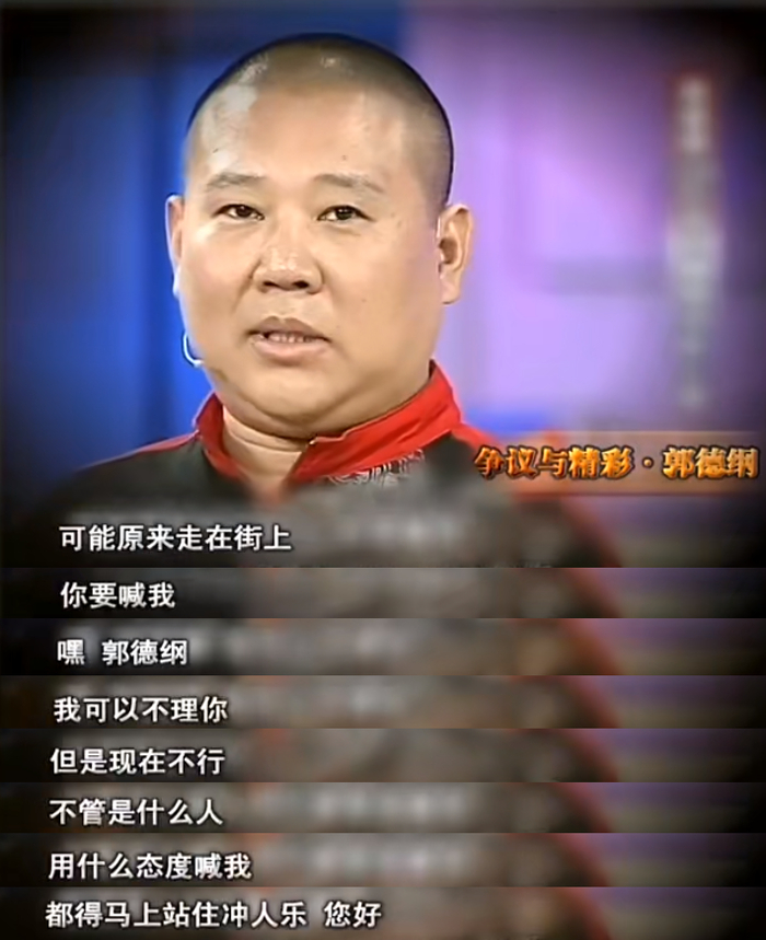 张立宪事后倒是很感慨:“我们依然很庆幸,就是我们在郭德纲老师被媒体大量地消费、消解之前,我们采访了他,保存了他。就是一个纯天然绿色的郭德纲被我们保留下来了。”