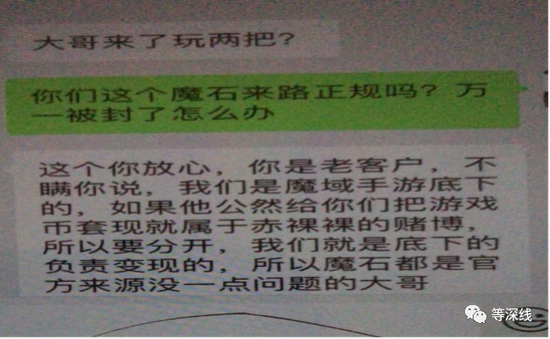 但北京市炜衡律师事务所合伙人、石家庄分所负责人丁垚律师在接受本报记者采访时却提及,“其实只要是直接用人民币充值在游戏中获得的虚拟资产,形式上就属于虚拟货币,但如果说玩家通过这种充值形式获得的魔石为虚拟道具,那就是在打擦边球,它是在玩一个概念”,“魔石既然是虚拟道具,本身只能从事玩家的游戏体验,而不应当具备其在游戏中的结算功能。一旦该虚拟道具具备游戏结算功能,那就跟直接用法定货币进行结算是一种形式。那么对于法律监管而言,就可能存在一个形式上不能直接结算的概念”。
