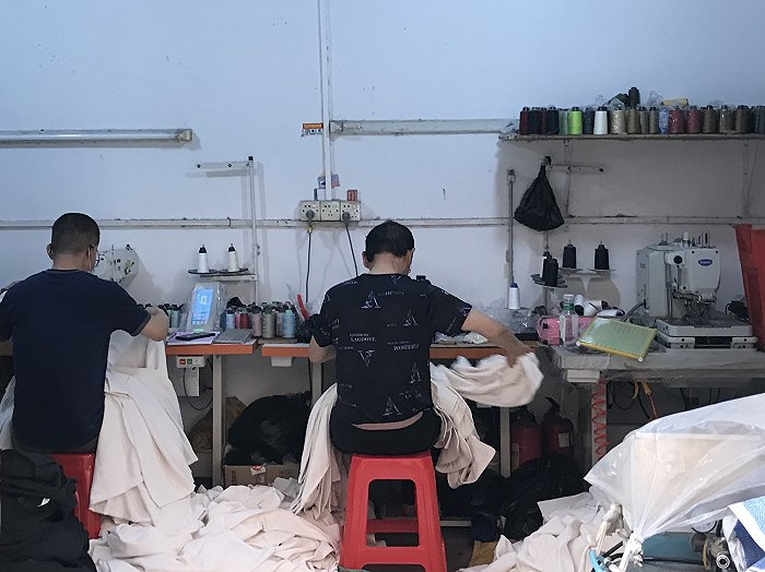 通常来说,商家在布匹市场挑选中布料之后,会在康乐村的工厂下单,在较短的时间里就能拿到成衣。多年下来,这里已经形成了一条相对完善的制衣产业链,包括裁剪、缝制、熨烫、印花等成衣制作环节。