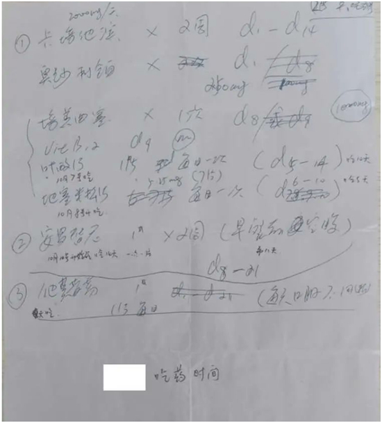 ·陆巍针对某晚期胃癌病人的手写化疗方案。
