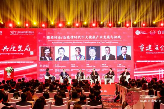 在其中的“后疫情时代下大健康产业发展与挑战”圆桌对话,泰康保险集团股份有限公司创始人、董事长兼CEO,亚布力论坛理事长陈东升,元明资本创始人,迈胜医疗集团董事长,亚布力论坛创始人、主席田源,爱康集团创始人、董事长兼CEO张黎刚,均瑶集团总裁,均瑶健康董事长,亚布力论坛理事王均豪,北京大学全球健康发展研究院院长刘国恩,深入讨论了大健康产业的发展趋势和政策发展,中国人民大学国家发展与战略研究院研究员朱丹主持了本场对话。