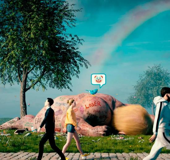 但它的精妙之处并非我们肉眼所见的10秒视频,而是背后的区块链技术。这件作品是Beeple针对去年9月美国大选创作的,如果特朗普当选,NFT的代码会实时跟进,将链上的作品变为一个火爆的特朗普在城市中肆虐尖叫,而如果落选,就是我们现在看到的样子,代码自动生成为“Loser特朗普”。买家所买下的正是失败者特朗普,而不是胜利者特朗普。