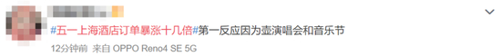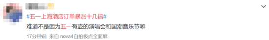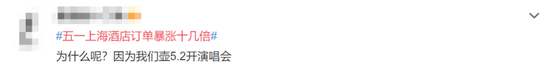还有网友认为,此次上海酒店订单暴涨很大一部分原因是受到演唱会和音乐节的影响。