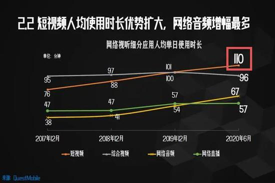 短视频平台是明目张胆的侵权方,却步步高升,迎来春天。据《2020中国网络视听发展研究报告》,截至2020年6月,短视频以人均单日110分钟的使用时长超越了即时通信。