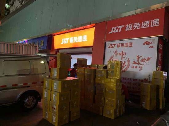 位于深圳市福田区的一极兔快件集散点正忙碌着