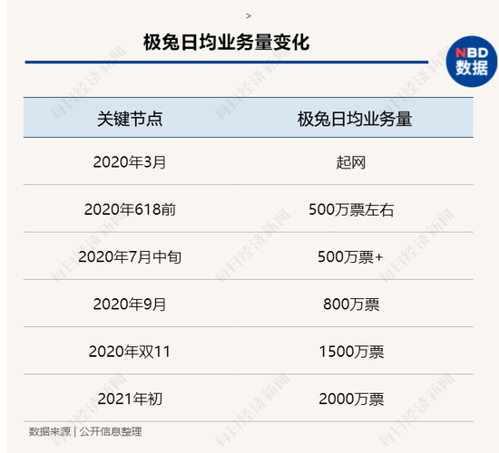 2020年3月,极兔在国内正式起网。据《每日经济新闻》记者多方求证了解,2020年618前,极兔日均业务量还仅为500万票左右。随着电商大促接踵而至,极兔2020年业务量屡创新高,7月中旬,极兔全网日单量已稳定在500万以上;9月,800万;双11,1500万……直到2021年初,仅用一年时间就突破日均2000万票。