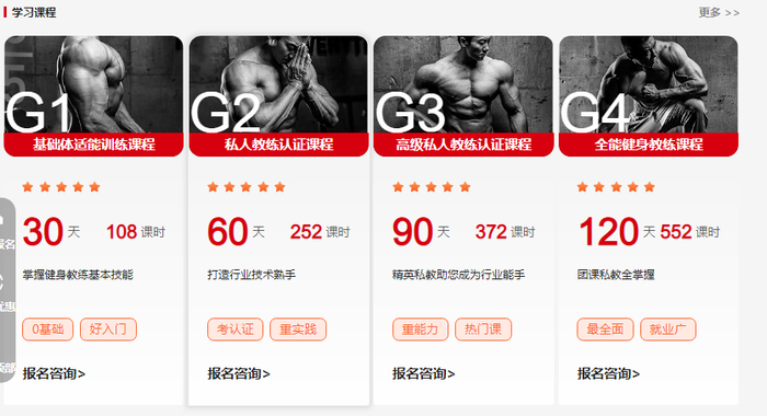 新京报记者检索各个健身教练培训机构的课程发现,基本上设置有1个月的培训课程。“0基础入学”、“入门快”是众多培训机构打出的宣传标签。