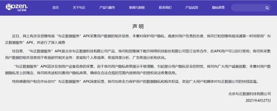 勾正数据的回应中,首先,“第一时间禁用勾正数据服务APK(APK即程序开发包)”,经过自查,勾正数据强调,此APK用户可以自行禁用。