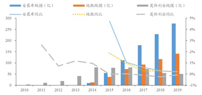 2014年之前,莫斯利安几乎垄断了国内的常温酸奶市场,销售额从2009年的1.6亿猛增至2014年的79.3亿。但伊利和蒙牛先后推出“安慕希”和“纯甄”,杀进常温酸奶领域,让莫斯利安的增长势头在2015年戛然而止,并陷入到持续下滑的困境之中。