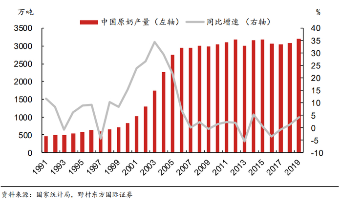 三聚氰胺事件前,中国原奶产量持续增长,野村证券