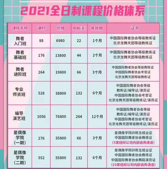 培训结束后,上述工作人员称会给练习生颁发星偶像学院训练生结业证、中国国际舞者协会教练证或舞蹈演员证以及享受5家以上经纪公司内部选秀通道。