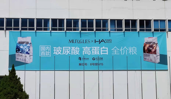 在8号展馆,我们找到了这家玻尿酸宠物粮展位。