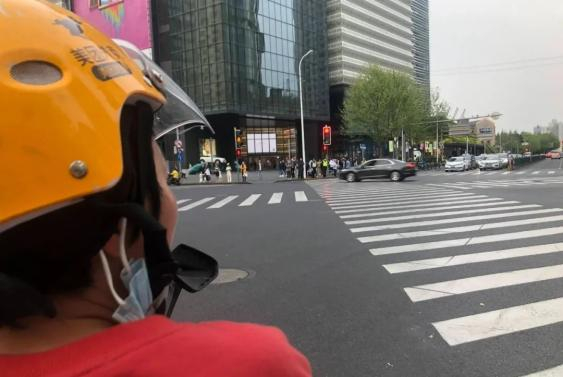 我提出跟她送一天外卖。为了在中途搭上车,我在商场门口等她送完之前的单子,才坐上她的后座。那是我坐过最惊险的电瓶车,考虑到后座有个人,阿潇还“放慢了速度”。做骑手后,迄今为止,她已换了三辆电瓶车。这一辆的后视镜也已经撞坏了,但她并不介意。她说,没有一个骑手是看红绿灯的,往往在灯还没有跳转时,他们就发动了。有一次,阿潇停在十字路口,信号灯已转红,另一个骑手看她着急,打趣式地伸出双腿横在路中间,说:你快走,我帮你拦着。