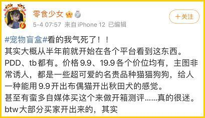然而时至今日,就在“爱之家”的救助工作忙到不停歇时,电商平台上的“宠物盲盒”仍未下架,销量居高不下,不知道监管部分,能否加大力度。我们也希望在更多的平台上,看到有关于“宠物盲盒”的发声。