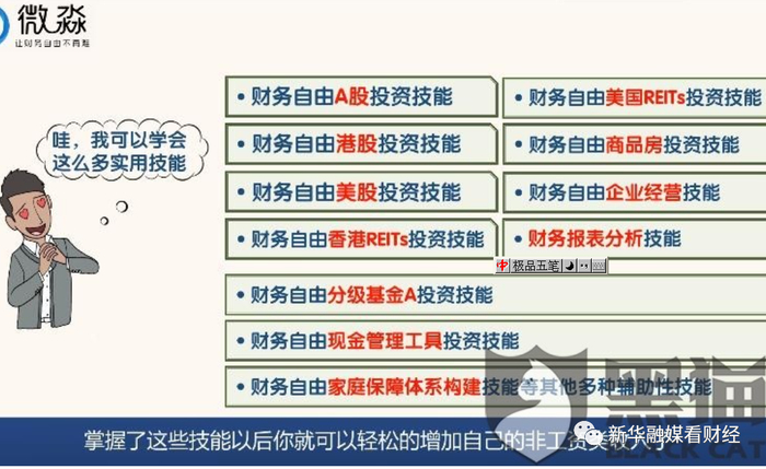 当学员回答不能时。一位老师一本正经地说:没有理财思维,就算给你财富你也守不住。工资5000有5000的理财手法,资产百万有百万的理财方法。上班只会决定收入的下限,理财决定收入的上限。理财讲究科学的方法,建立适合自己的理财体系,推荐微淼商学院,课程涵盖股票、基金、债券等常用的投资理财工具。