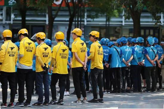 一辆辆疾驰而过、有时甚至是逆行闯红灯的外卖电瓶车,来往穿梭在行人、机动车之间,骑手们边看手机软件导航,边争分夺秒抢时间。而这样的骑手,奔走在全国大大小小的城市马路上,每天每夜为全国几亿人口送去热餐食。杂乱中又显得秩序井然。