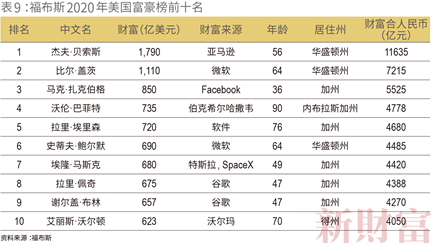 2020年末,美股总市值56万亿美元(约合363万亿元人民币),而A股总市值87万亿元,港股总市值59万亿元,两地加起来也只到美股的4成。和美国富豪榜比较,中国首富钟睒睒的身家尚只有美国首富贝索斯的一半(表9)。