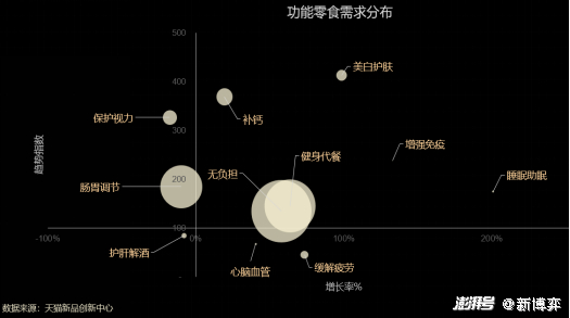 嗅觉灵敏的资本在功能性零食行业的高出场率印证了这个赛道的光明前景,但功能性零食显然还有更多可能性。目前来看,功能性零食的市场远未成熟,具体表现为产品品类单一,除了上文提到的软糖,目前市面上的功能性零食主要是蛋白棒、果冻和纤维饼干。此外,消费者的需求偏向于单一,多集中在体重管理、肠道调节、美白护肤、补钙等方面,结合目前消费市场的多元健康需求看,还有更多需求等待被开发。