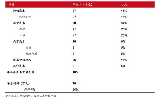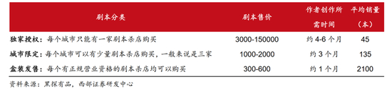 西部证券显示:剧本杀店家向玩家收取门票费用来获得收入。一次剧本杀的时间在 2-5 小时左右,一般由5-10 人共同参与。门票费在几十元到几百元之间不等,二线城市的剧本杀多在百元以下,一线城市则以200-300元为主。