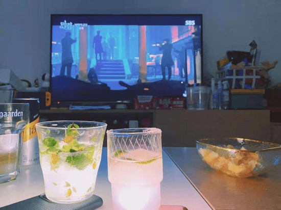 图 / 姜媛也极为重视喝酒时的氛围,日常喝酒时,她会切几片火腿、奶酪,或者准备一个果盘,然后放一部电影。