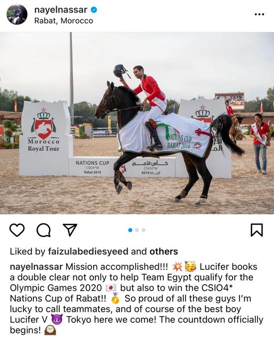 不止如此,他还代表自己的祖国埃及参加了2013、2014和2017年国际马联的总决赛以及2014年的世界马术运动会,并且为埃及赢得了60年来首次出征奥运会马术比赛的资格,即近在眼前的东京奥运会: