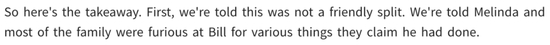 文章言之凿凿地表示,知情人士透露家里人都对盖茨的所作所为义愤填膺,毫不犹豫地站在了梅琳达这边: