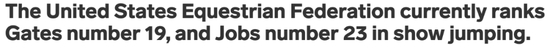 在18年美国马术联合会的排名里她位列场地障碍赛的第19名,高于Eve Jobs的23名: