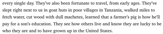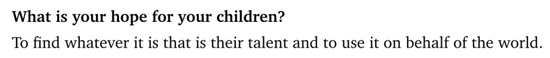 正如母亲对孩子们的殷切希望,她希望他们找到“talent”,并且“use it on behalf of the world”,这是多么宏伟的教育目标,我们可以理解为,正因为父亲和母亲都做到了,体验到了,所以才那么希望孩子们也能够做到。