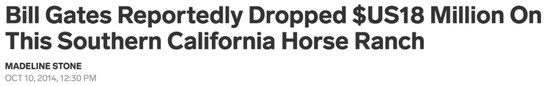 然而,盖茨的置业足迹永不只在佛罗里达。14年,他还在南加州圣地亚哥的圣菲牧场以1800万美金买下了一处超过92万平方米的马场: