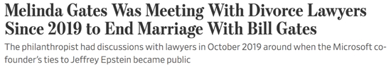 《华尔街日报》称早在2019年梅琳达就咨询过律师关于离婚的事项,而原因竟是丈夫和被定罪为性犯罪者后在狱中猝逝的Jeffrey Epstein(杰弗里·爱泼斯坦)维持友谊: