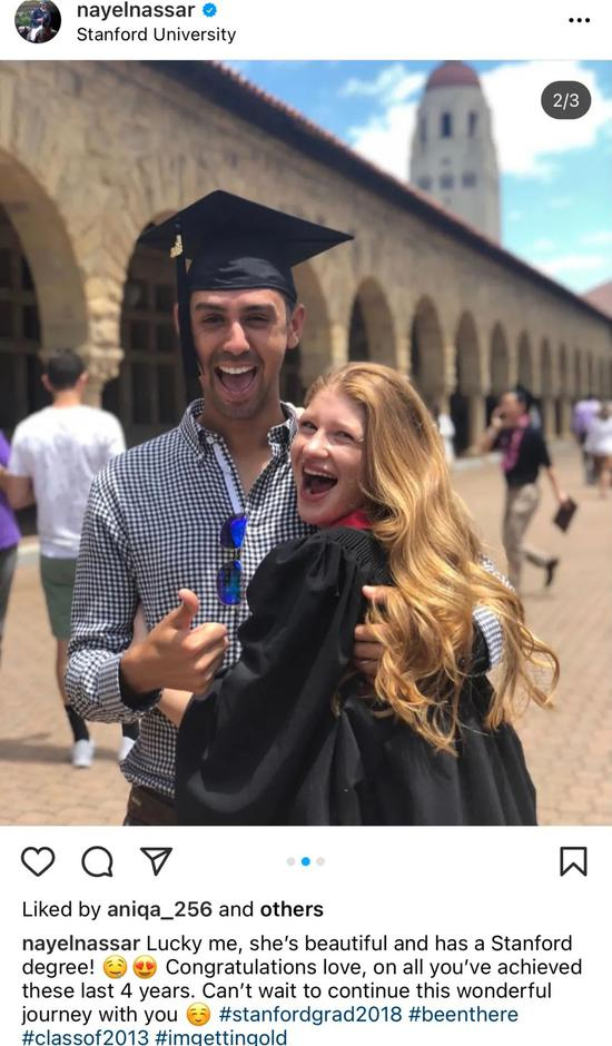 多元的成长环境让他会说多国语言,包括英语、阿拉伯语和法语。09年,他从科威特回到美国就读斯坦福大学,并于2013年获得了经济学学士学位,比Jennifer大了五级: