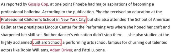 其实关于她的信息,媒体上能查到的更加寥寥无几。有说法称,和哥哥姐姐们走的学院派风格不同,Phoebe是个狂热的舞蹈爱好者,曾梦想成为专业的芭蕾舞演员,父母也竭尽全力在这方面培养她: