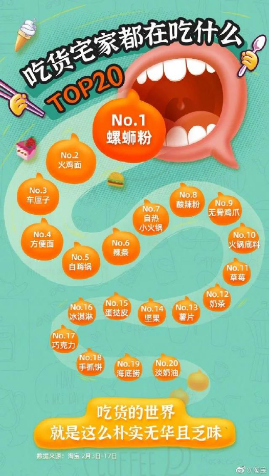 去年2月全国封城,淘宝做了一个“宅家美食”排行榜,螺蛳粉高居榜首。